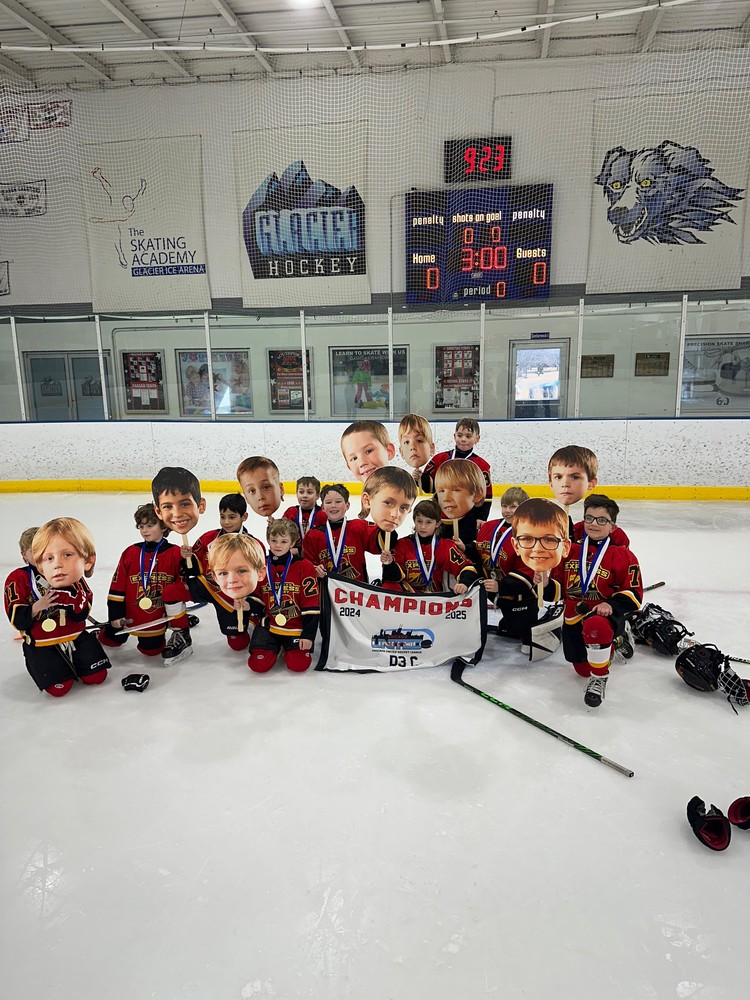 Early Sunday morning the Junior Express #2 team rolled into Glacier Ice Arena for the CUHL D3-C finals and capped off an incredible season in style. Our mite minors beat the Glacier Jr. Ice Dogs #4 team 6-4 in a hard-fought battle. The regular season champs went a perfect 4-0 in the CUHL playoffs, earning them the D3-C title. Congrats to Mite 2! The Express organization is proud of your accomplishment!